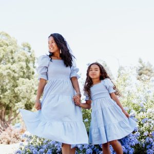 Mommy & Me Dress: Solid Blue Cotton Dress, Matching Outfit, Mom and Daughter Dress, Wedding Dress, Holiday Dress, Party Dress, Boho Dress,