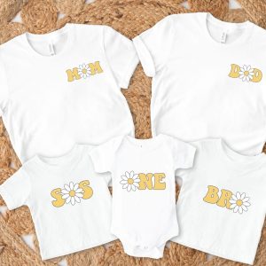 Daisy First Birthday Family Matching Party Shirts, Boho Daisy 1st Birthday Girl Outfit, Retro Daisy Theme Birthday Mama Dad Tshirt, Mom & Me