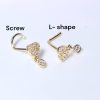 14K Gold Heart Nose Stud, 20g Dainty Dangling Gem L Shape Corkscrew Nose Stud, Gold Nose Jewelry, L Bend Screw Nose Piercing Stud Ring